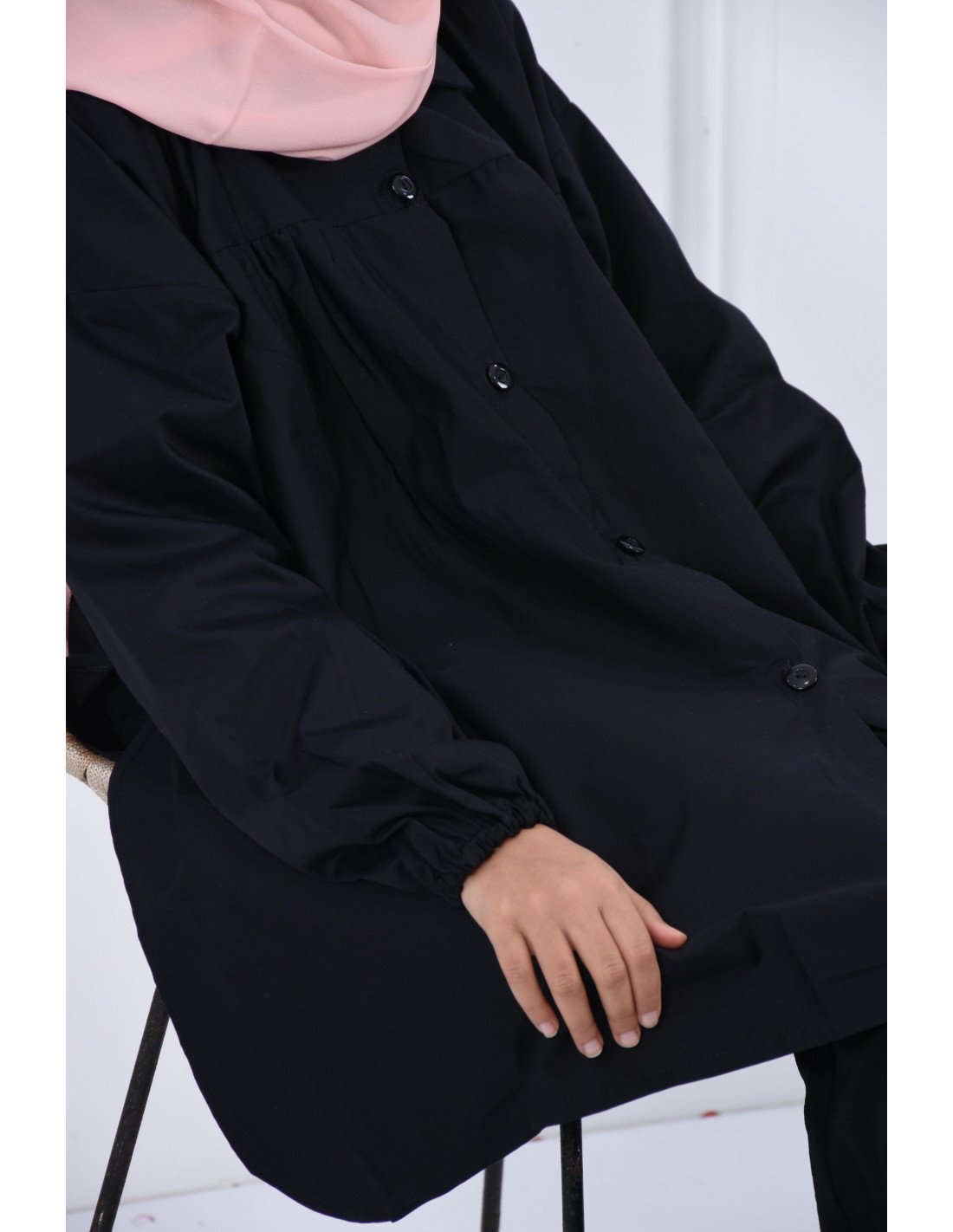 Cut: Long and loose, it ensures complete freedom of movement for everyday activities while keeping a touch of elegance.