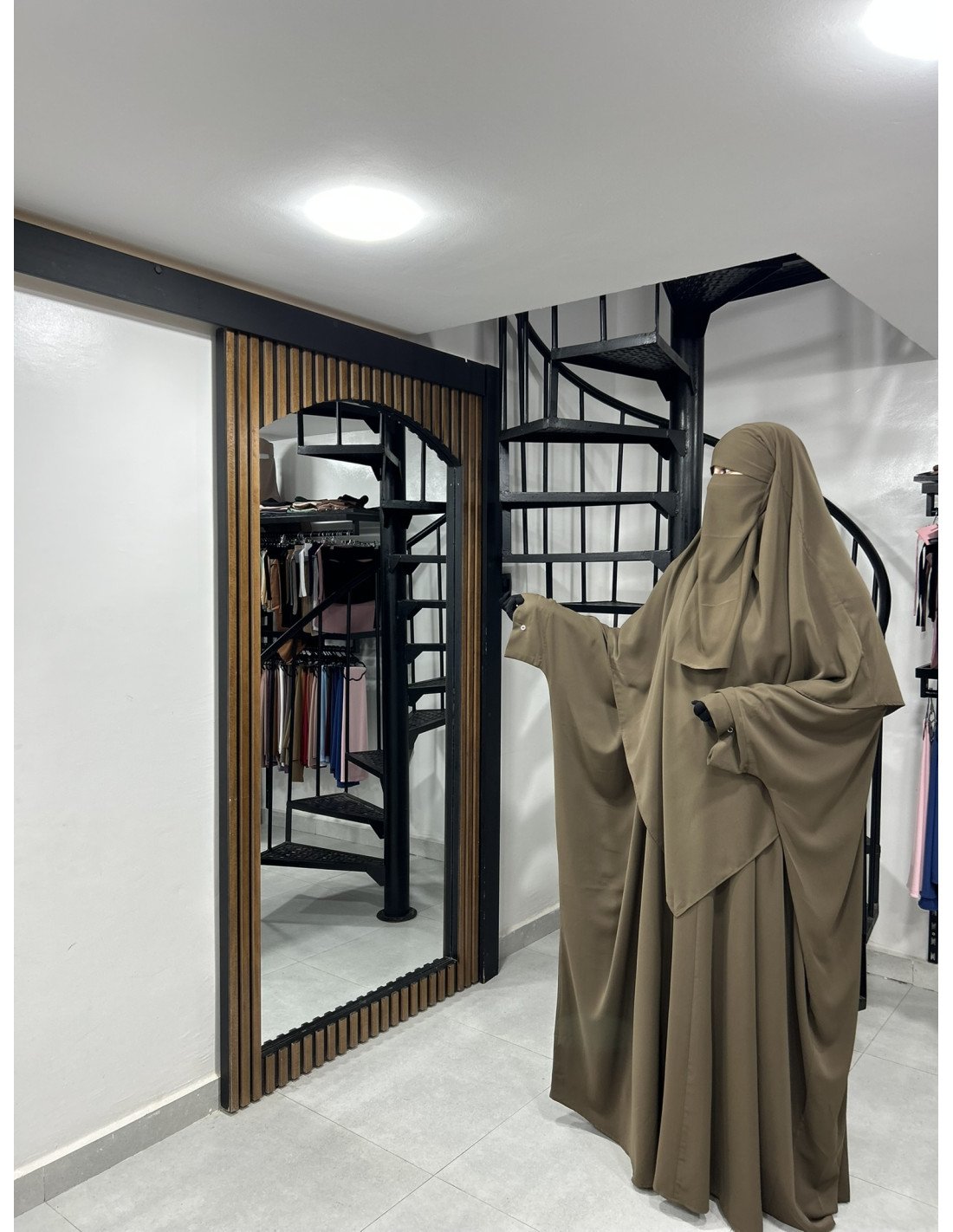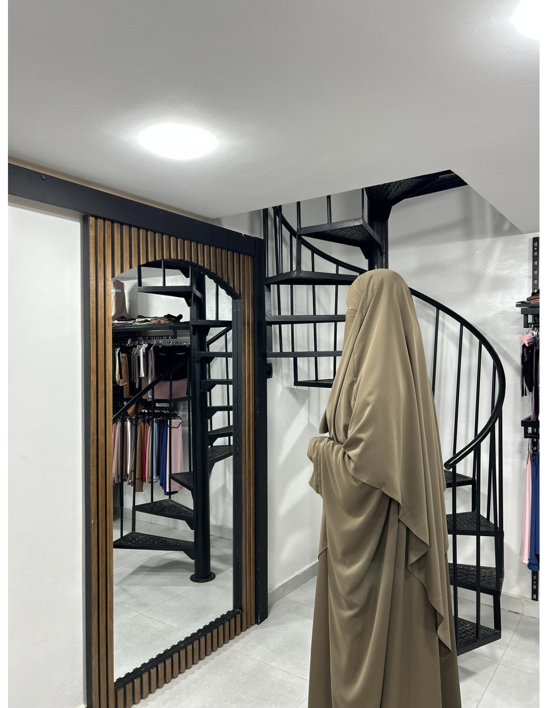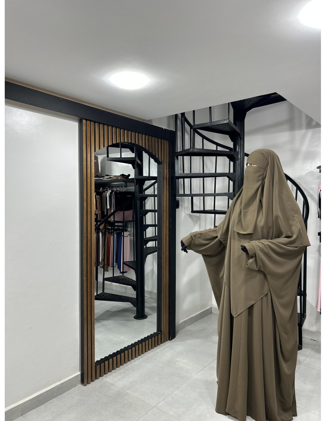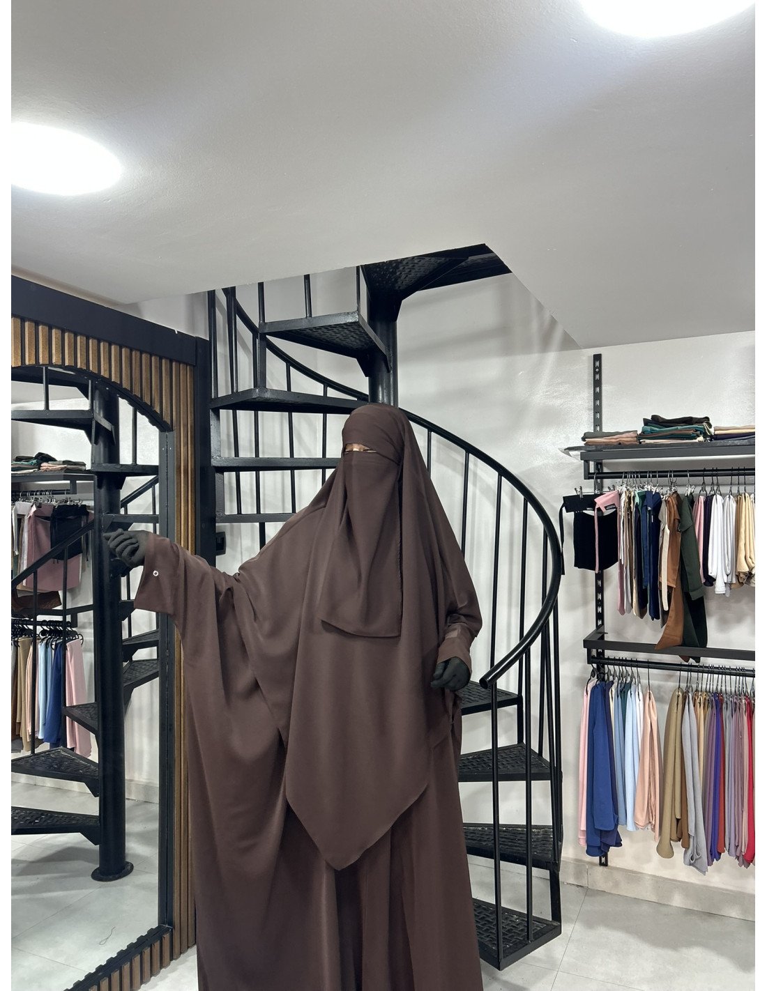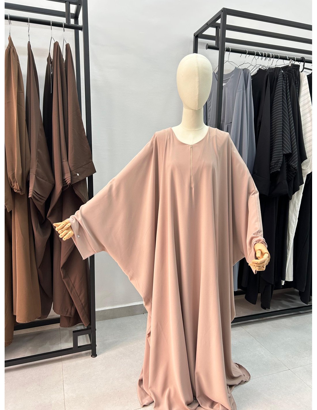 Abaya Farasha en crêpe, manches kimono avec boutons pression. Fluide, mastoura et confortable.