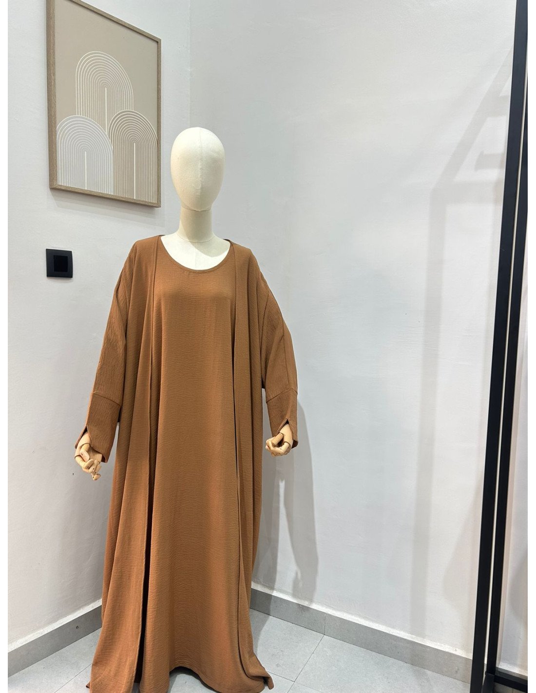 Coupe : Sous-robe droite avec manches courtes + Kimono ample et fluide