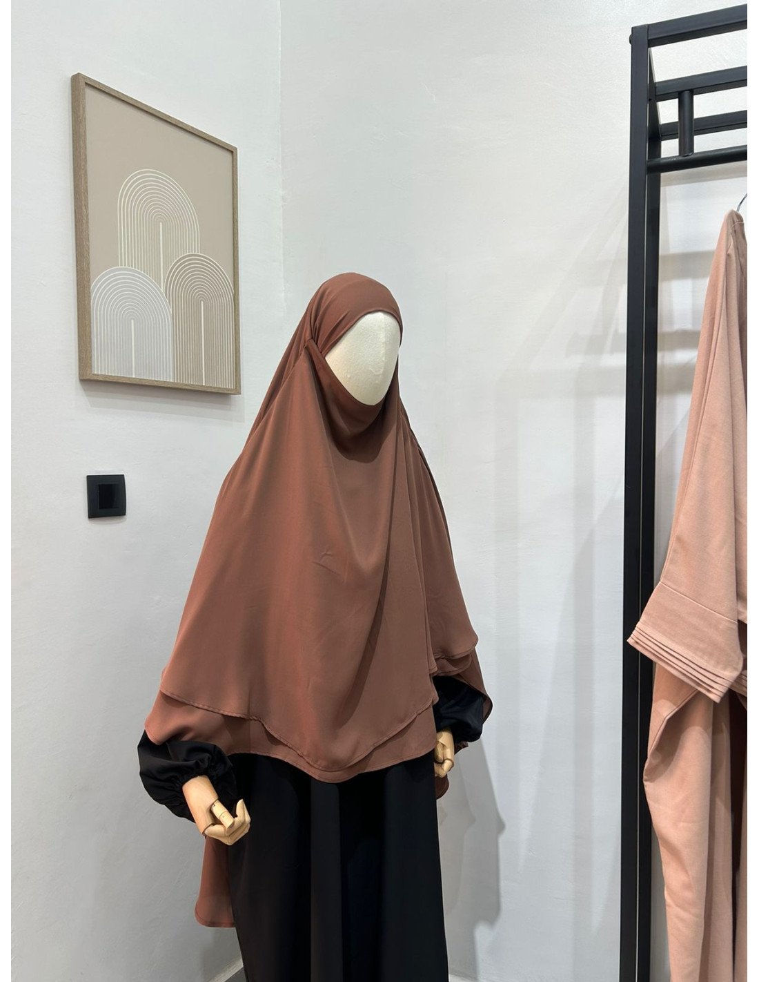 Grâce à sa conception double voile, ce khimar garantit une opacité optimale, tout en restant confortable et respirant.